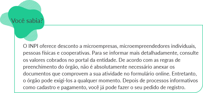 Antes de dar a entrada no pedido, você deve ter claro quais são os tipos de marca e em qual a sua se encaixa. Será apenas o nome comercial? Terá uma logomarca? É uma marca física (tridimensional)? É esse o momento de decidir definitivamente sua forma de apresentação.